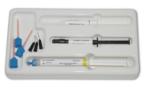 The bleaching gel consists of 35% hydrogen peroxide, potassium nitrate, sodium fluoride and glycol. This fast-acting gel requires mixing before use and comes in a two-component syringe with three mixing tips.