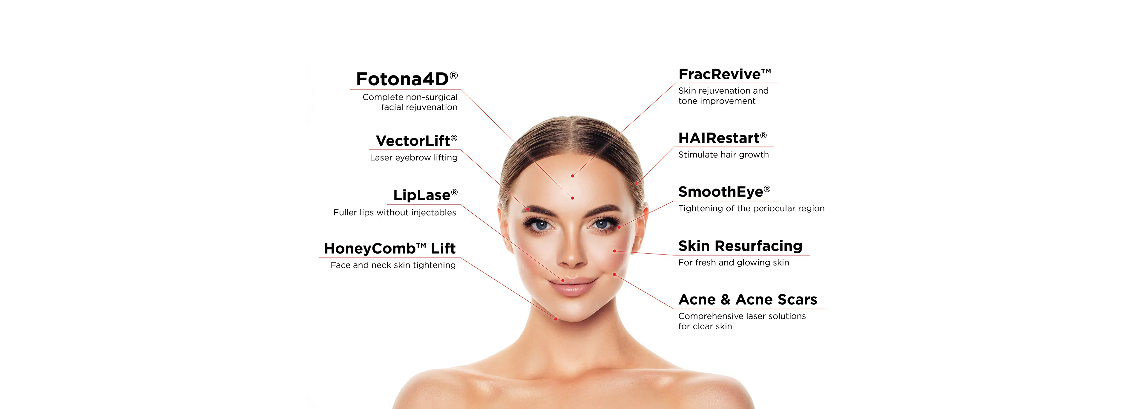 Innovative solutions are available for a wide range of aesthetic treatments, including skin resurfacing & rejuvenation, veins and vascular lesions, pigmented lesions & tattoo removal, permanent hair reduction, and much more.