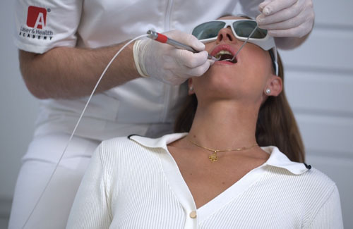 - The laser gently heats the mucosal tissue inside the mouth.