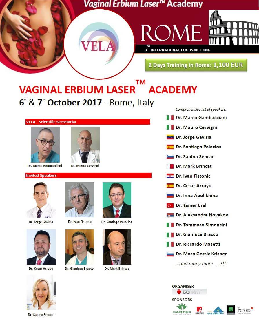 This will be the 3rd VELA International Focus Meeting, taking place for the first time in Rome, "the eternal city". This meeting will feature more than 18 presentations from highly respected experts in the field of laser gynecology and urogynecology from 10 different countries worldwide, featuring both theoretical and LIVE practical treatments.