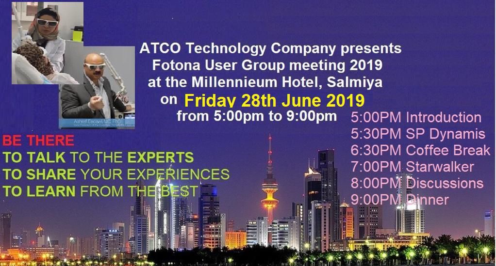 ATCO Technology is organizing a Fotona User Group Meeting on June 28th in Salmiya, Kuwait.