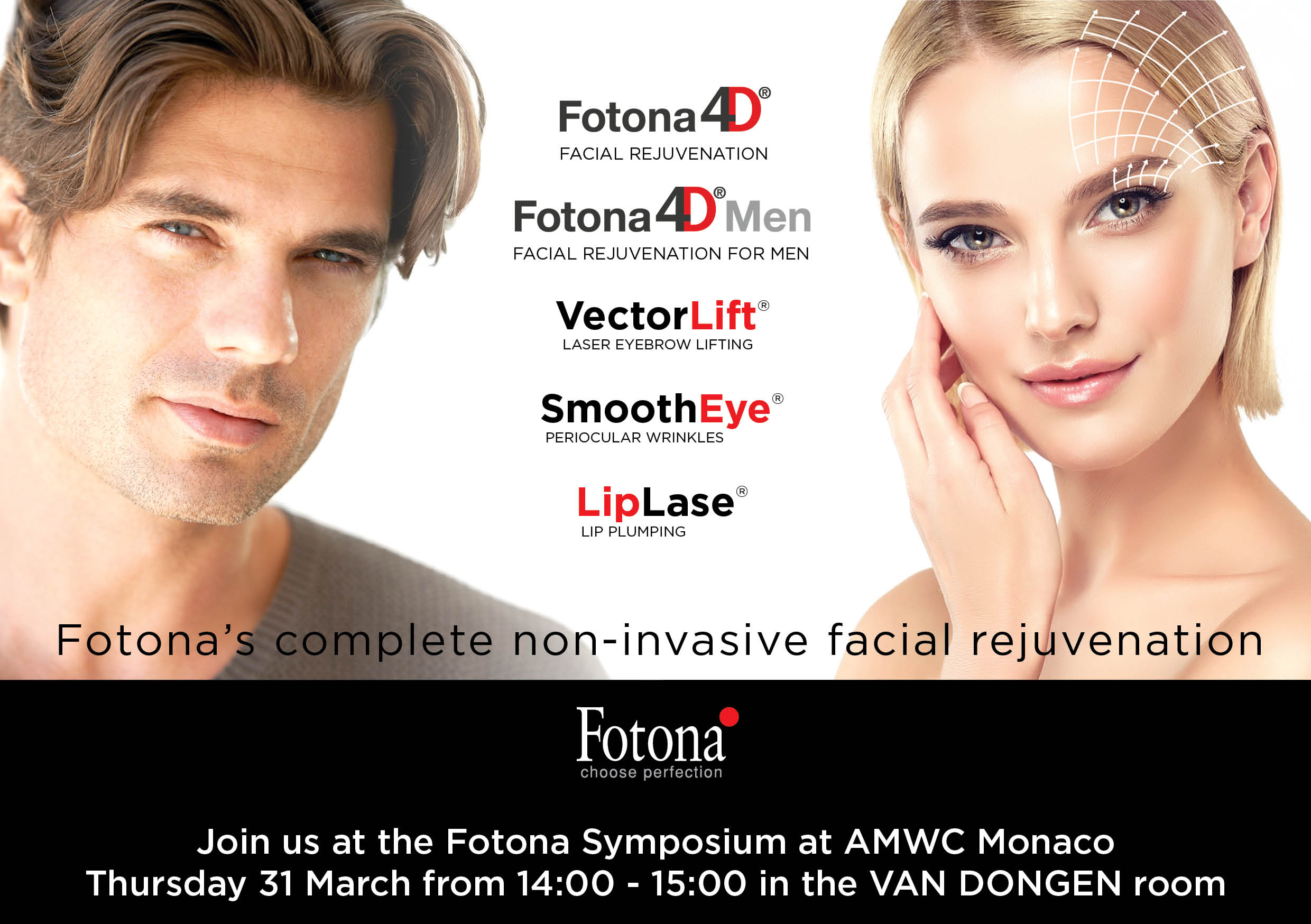 And be sure to also join us at the Fotona Symposium on Thursday, March 31st from 14:00 - 15:00 in the VAN DONGEN room, where we'll be discussing Fotona's complete non-invasive facial rejuvenation solution: Fotona4D®, SmoothEye®, LipLase™, VectorLift® and Fotona4DMen®.