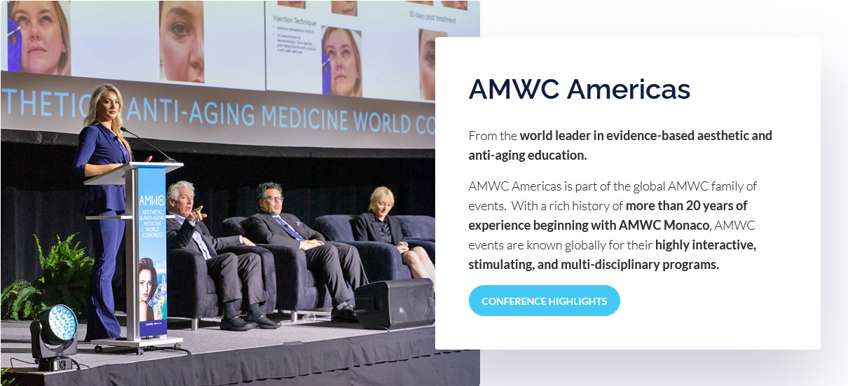 AMWC Americas offers evidence-based, cutting-edge scientific content for all medical aesthetic practitioners. From nonsurgical to minimally invasive treatments, regenerative aesthetics, anti-aging therapies, sexual health, and personalized nutrition, this program covers it all! Plus, you'll gain valuable business and practice management education.
