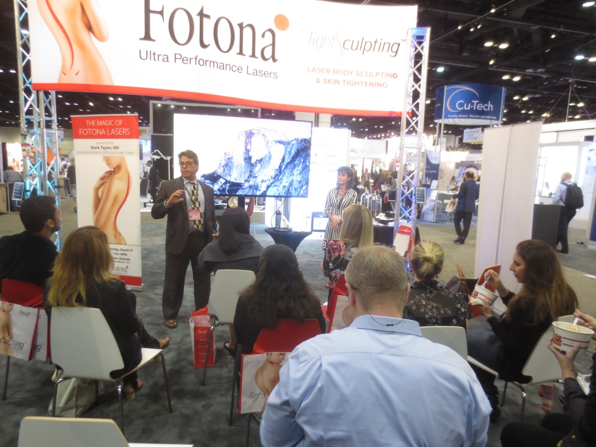 The Fotona booth at AAD was exceptionally busy this year, with a record number of visitors and some outstanding presentations by several Fotona reference practitioners: Rita Altman (SP Dynamis), Dr. Shayla Francis (My Fotona experience), Dr. Ashraf Badawi (Fotona4D & Peri-orbital rejuvenation) and Dr. Amy Taub (TightSculpting).