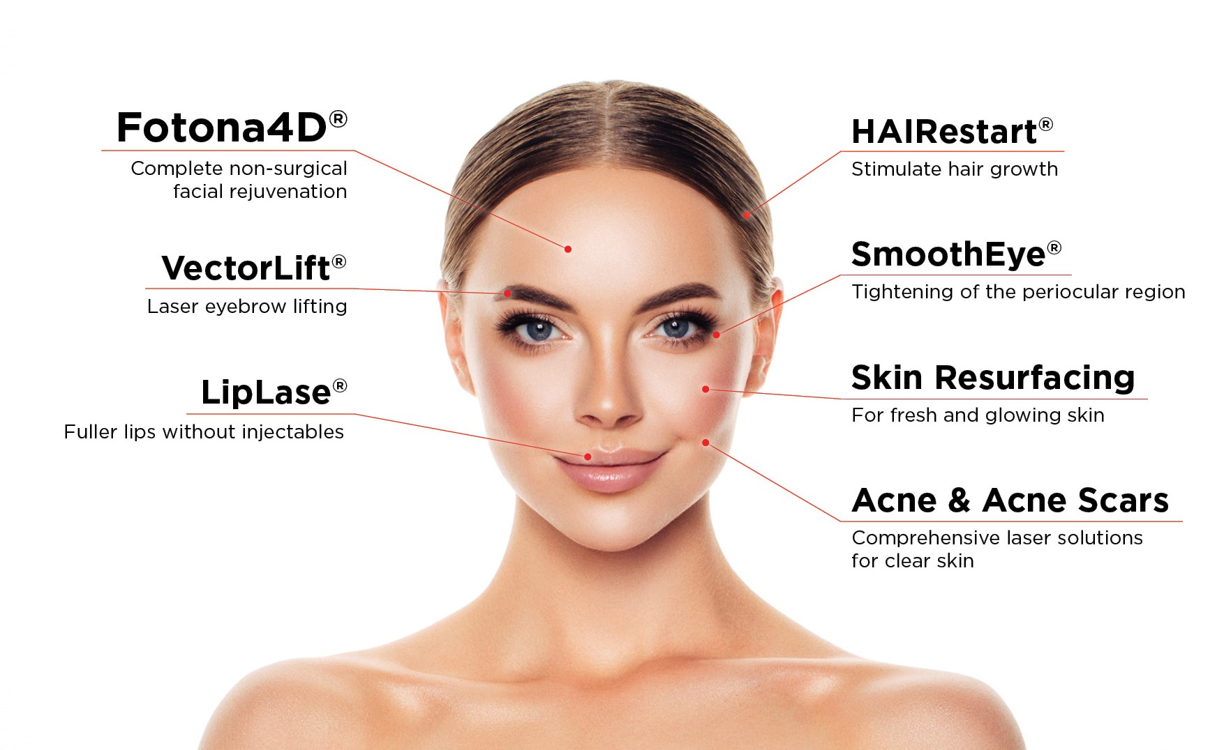 The TimeWalker® Fotona4D® PRO model provides a comprehensive minimally invasive facial rejuvenation solution, combined with ablative full and fractional peelings, scar treatments, facial vascular lesions removal, HAIRestart® therapy, active acne and rosacea treatments, facial hair removal, ComfortLase™, Nd:YAG surgical procedures and more.