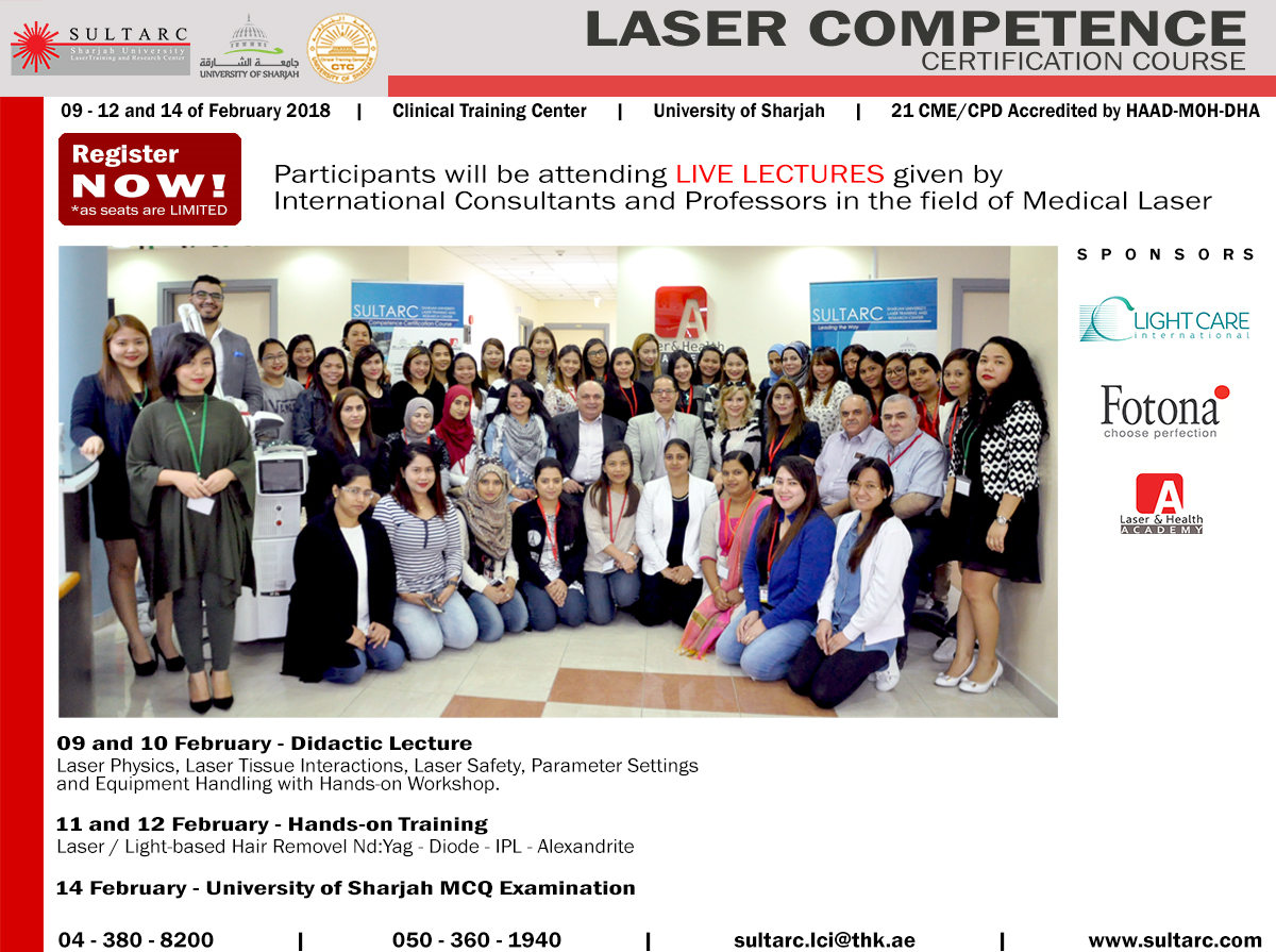 Fotona's educational partners LightCare International and the Laser & Health Academy are accepting registrations for the Laser Competence Certification Course with hands-on training at the University of Sharjah Clinical Training Center.